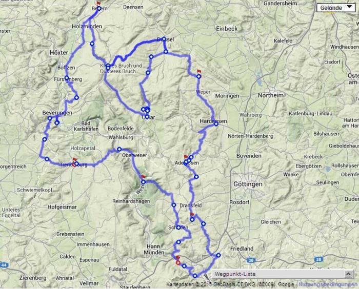 Samstag, 22.06.2013 Start/Ziel: Beverungen (Weser) via: Schloss Bevern - Solling/Dassel - Adelebsen - Gauß-Turm/Dransfeld - Werra-Ufer - Kloster Bursfelde - Trendelburg ca. KM: 270 Der 22.06.2013 auf www.motoplaner.de |